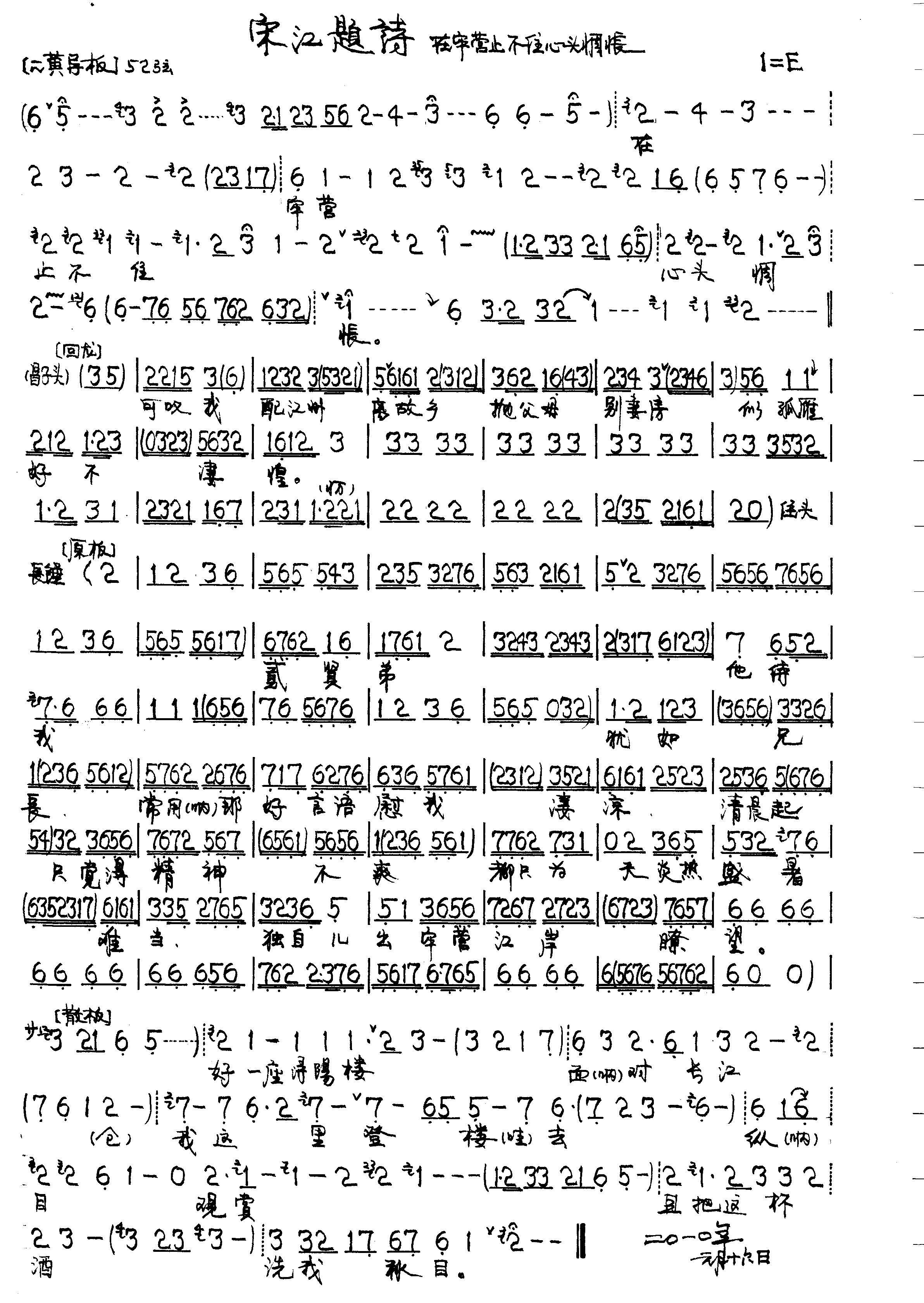在牢营止不住心头惆怅 宋江题诗 选段 琴谱