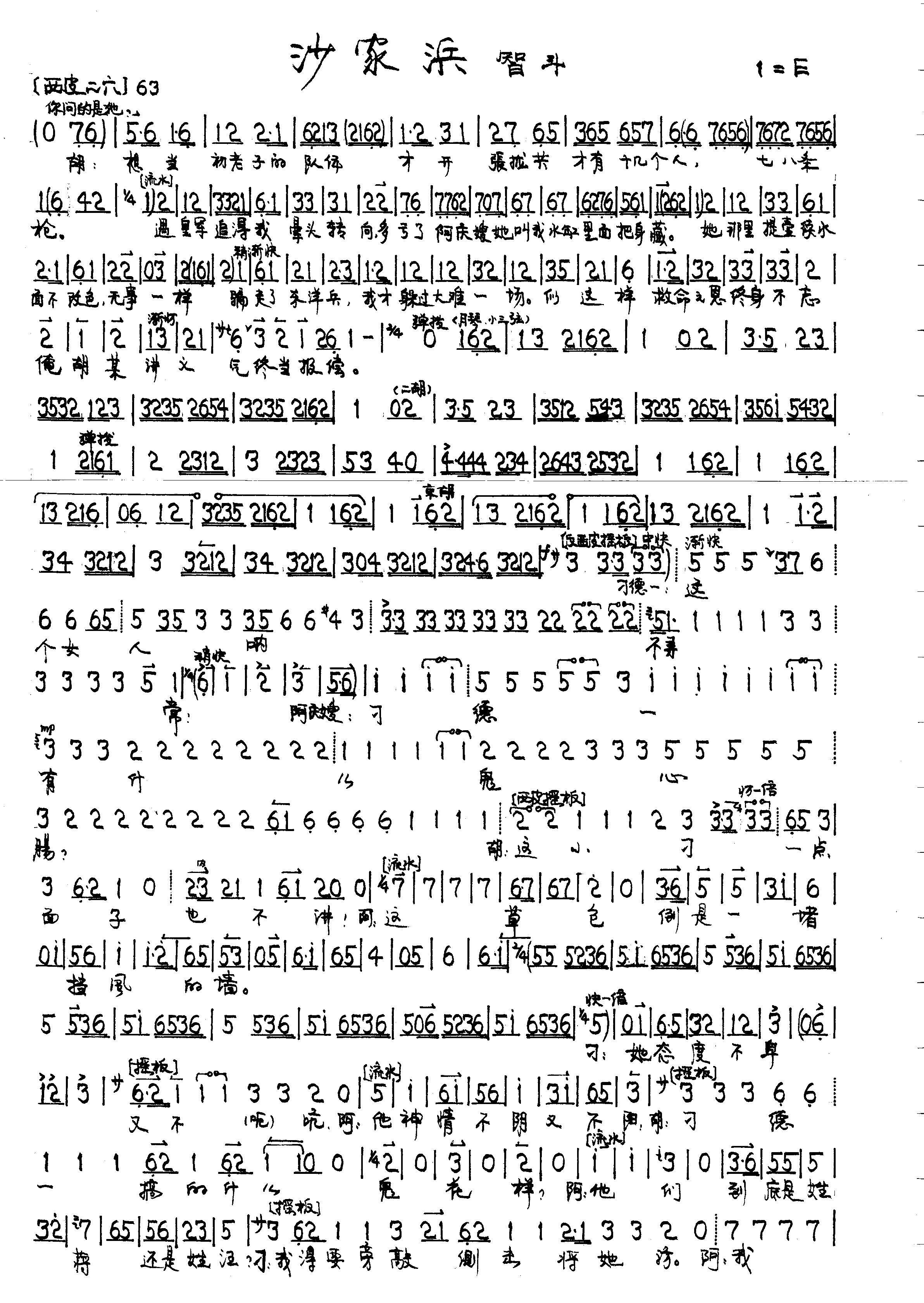 智斗 沙家浜 选段 伴奏谱