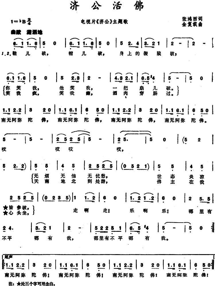鞋儿破帽儿破 电视剧 济公 主题歌