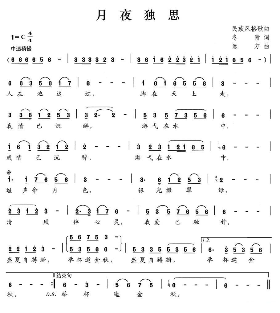 - [歌谱] 月夜思归
