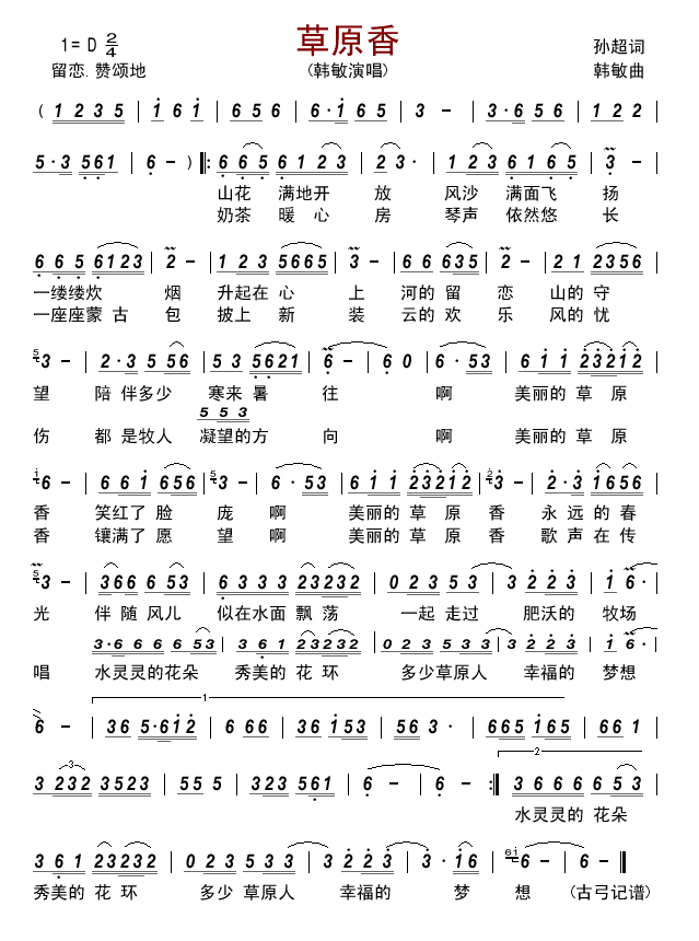 - [歌谱] 草原香 韩雷 庞龙