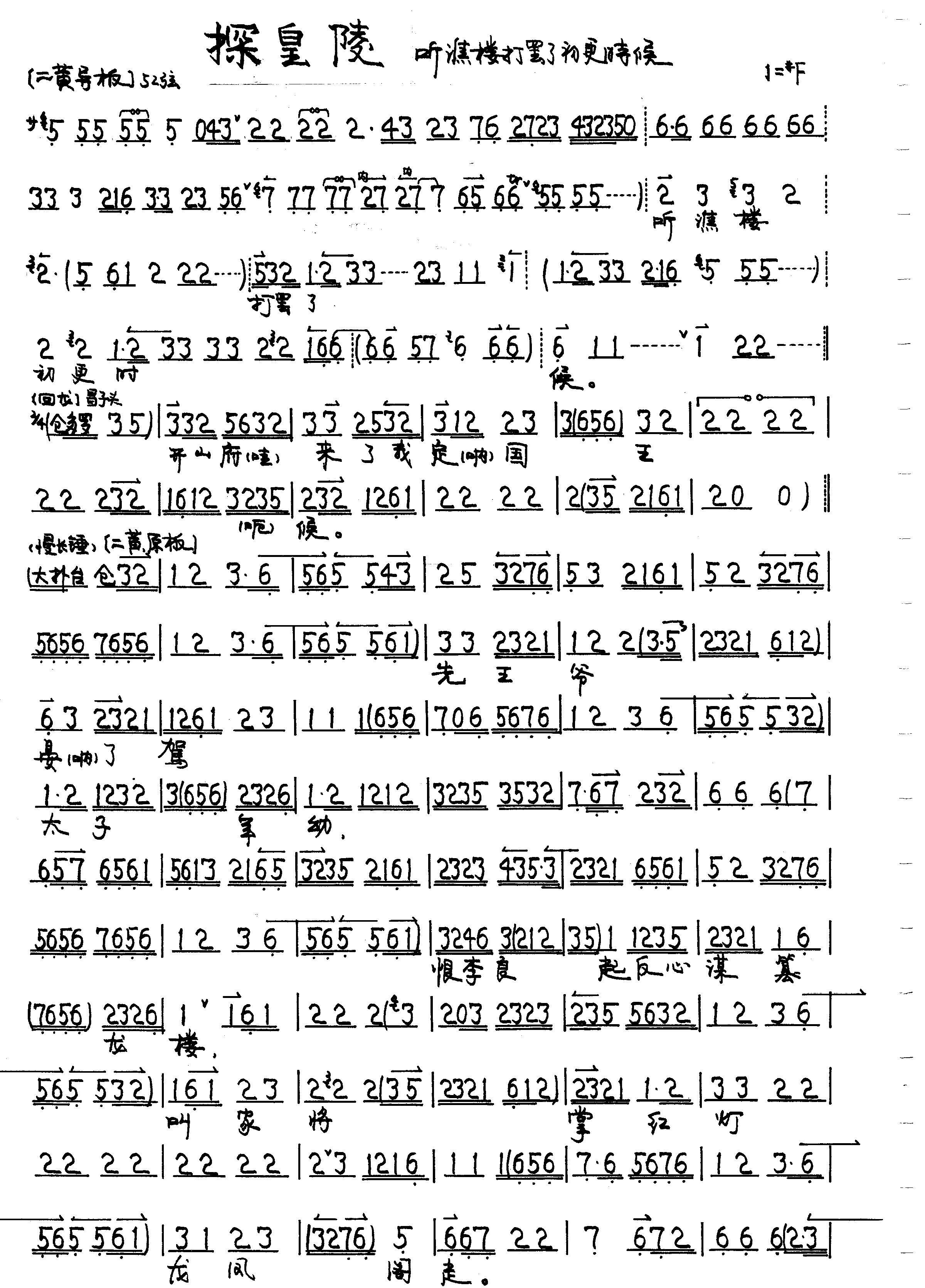 探皇陵 听谯楼打罢了初更时候 京剧 大探二 选段 京胡谱