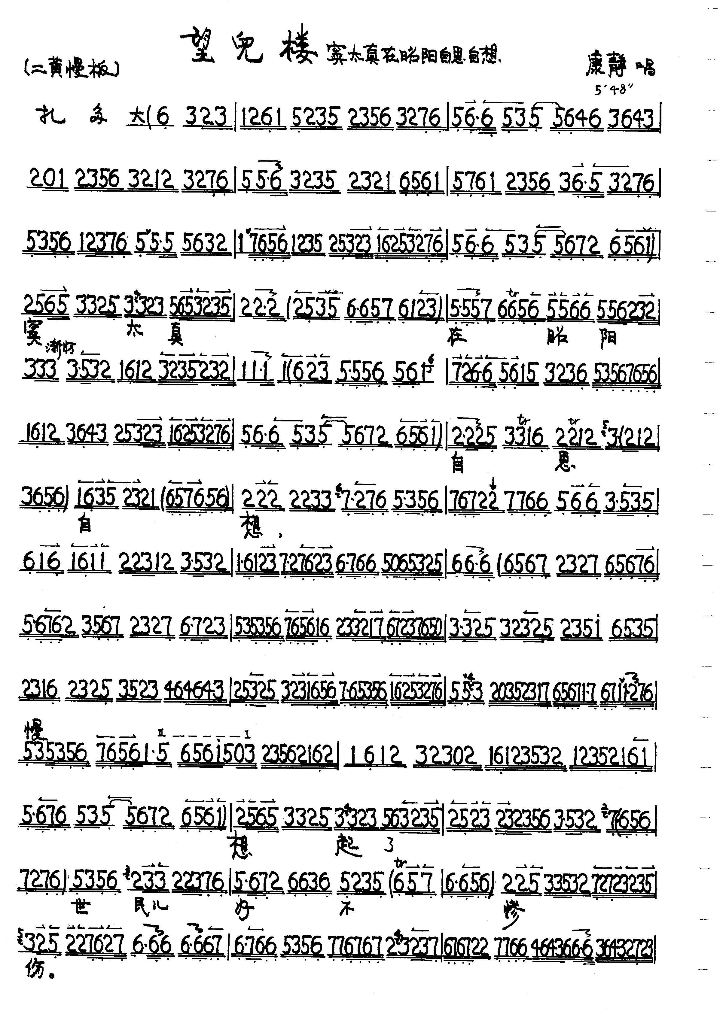 望儿楼 窦太真 听谯楼 京剧选段 京胡谱