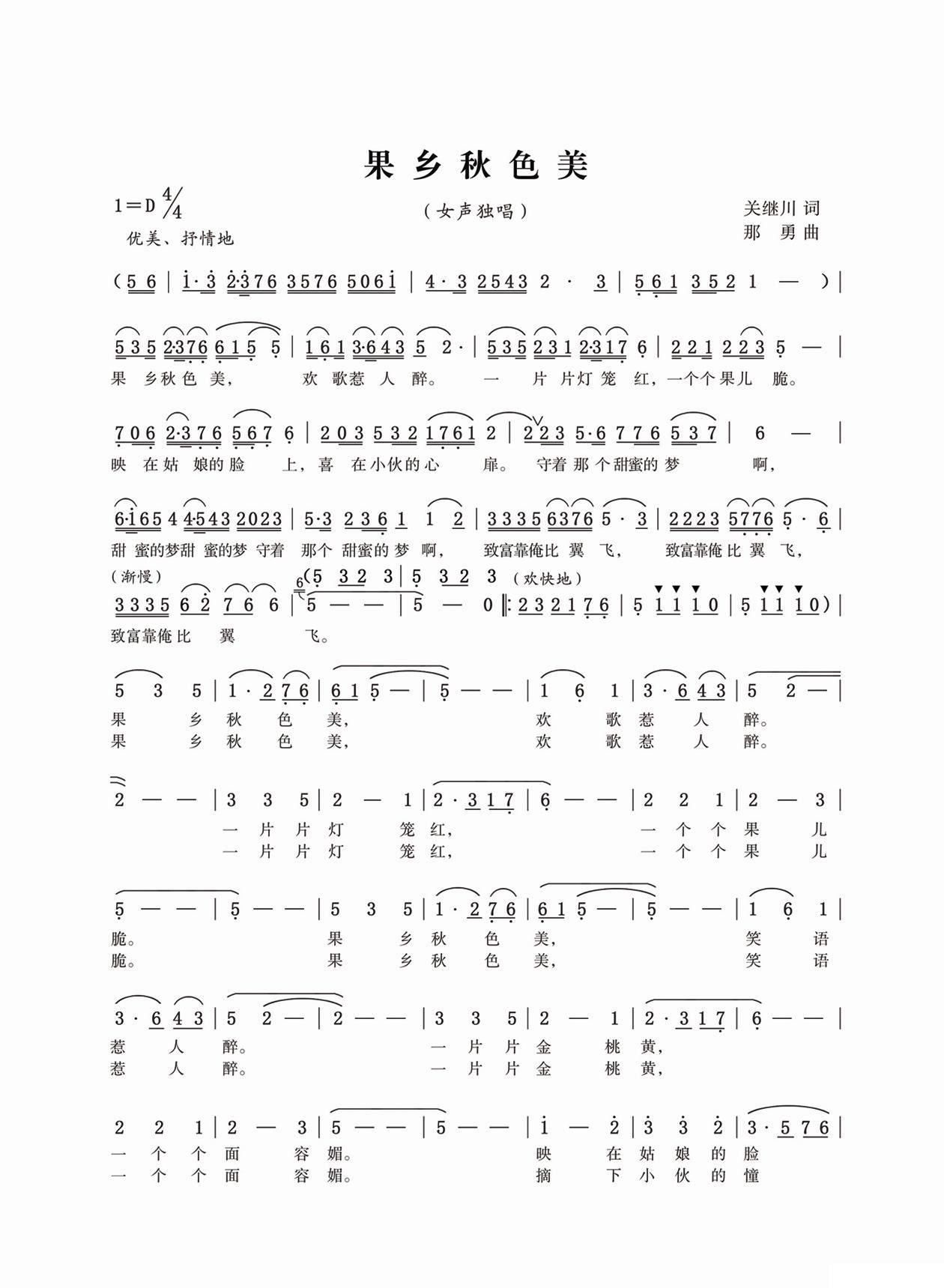- [歌谱] 果乡曲
