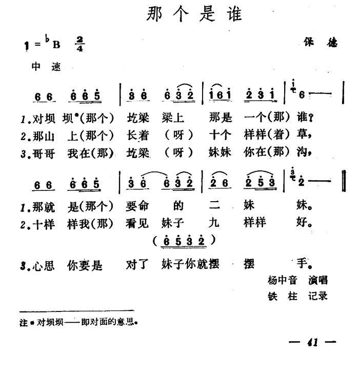 - [歌谱] 那个是谁