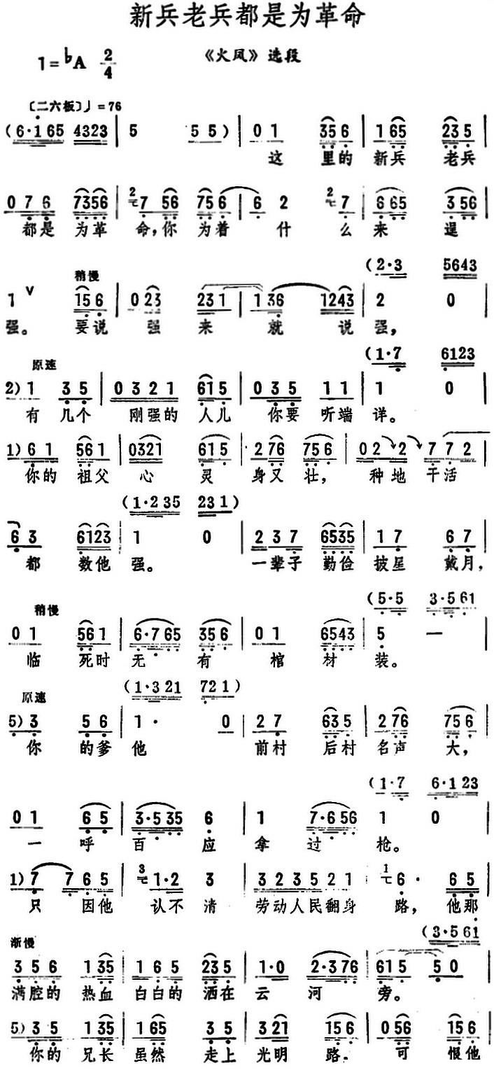 新兵老兵都是为革命 火凤 选段
