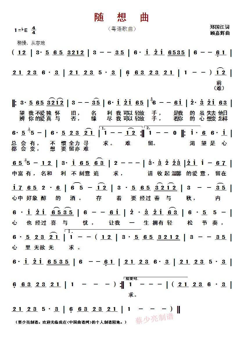 - [歌谱] ?盼望的缘份 粤语歌曲