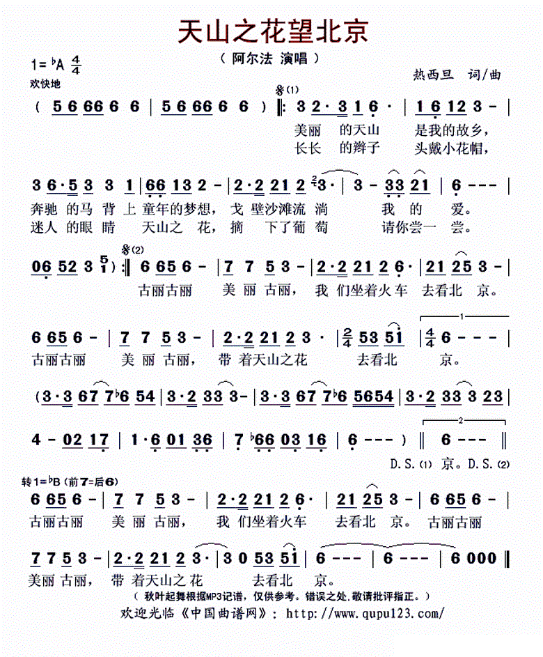 - [歌谱] 天山之歌