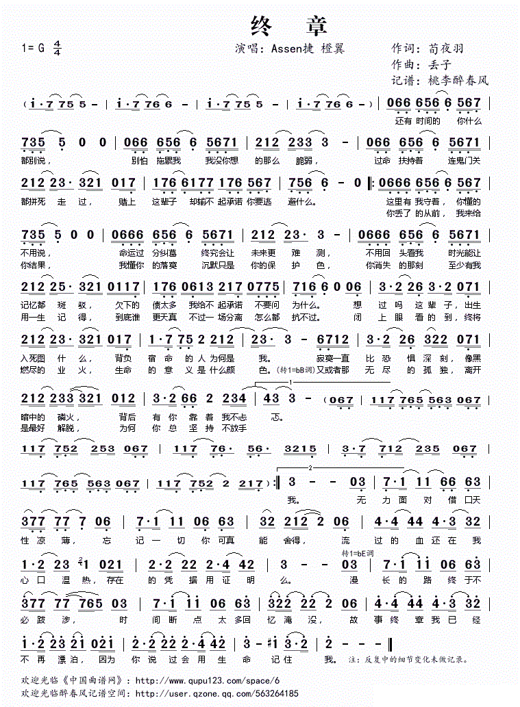 - [歌谱] 当归 Assen捷 橙翼