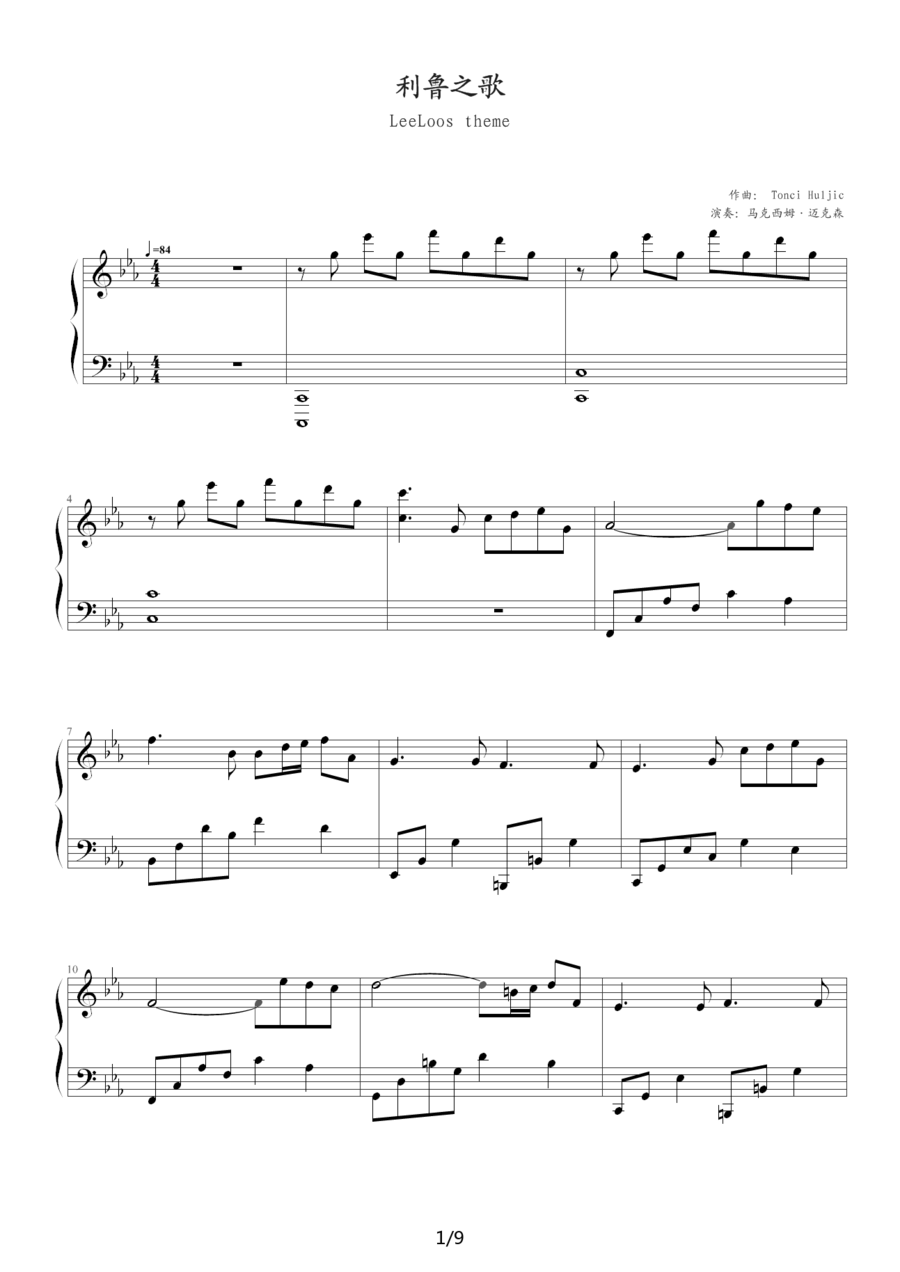 - [钢琴谱] Leeloos tune 利鲁之歌 纯钢琴