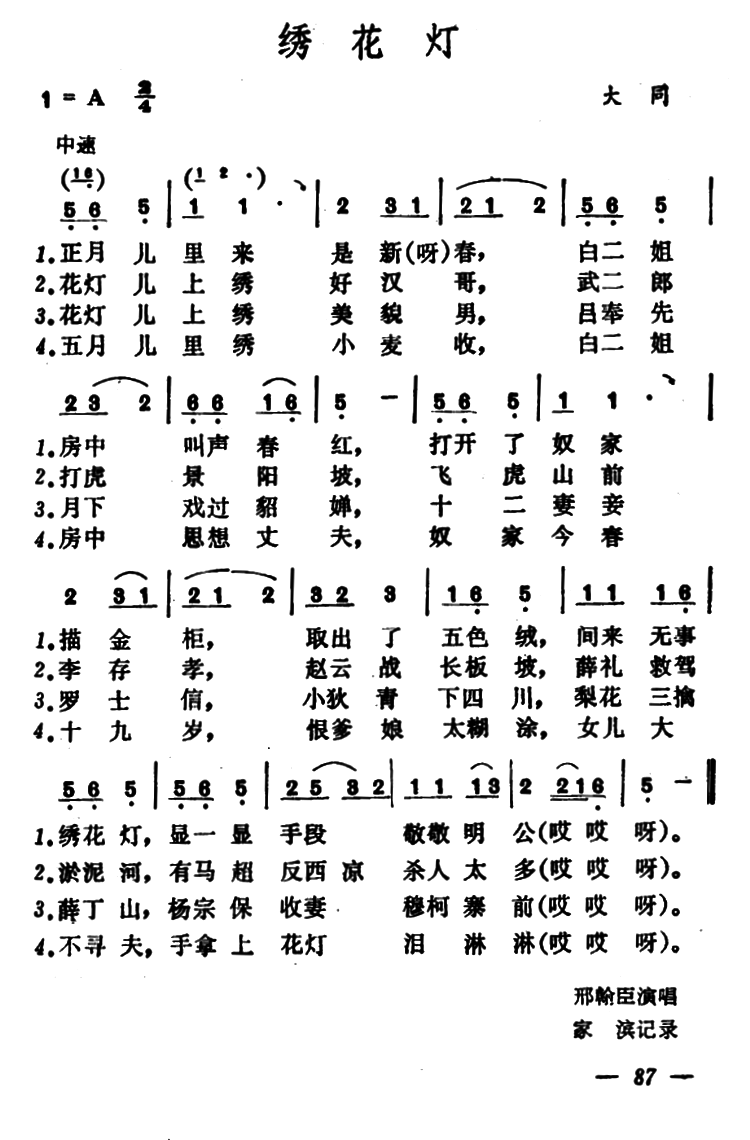 中国民族民间舞曲选 四 山西秧歌 绣花