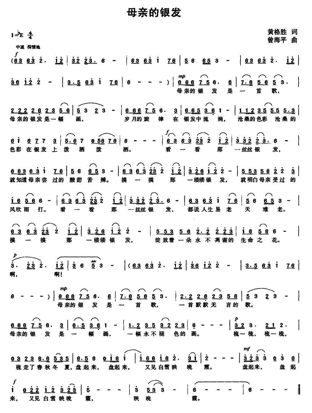 - [歌谱] 沉默的母亲