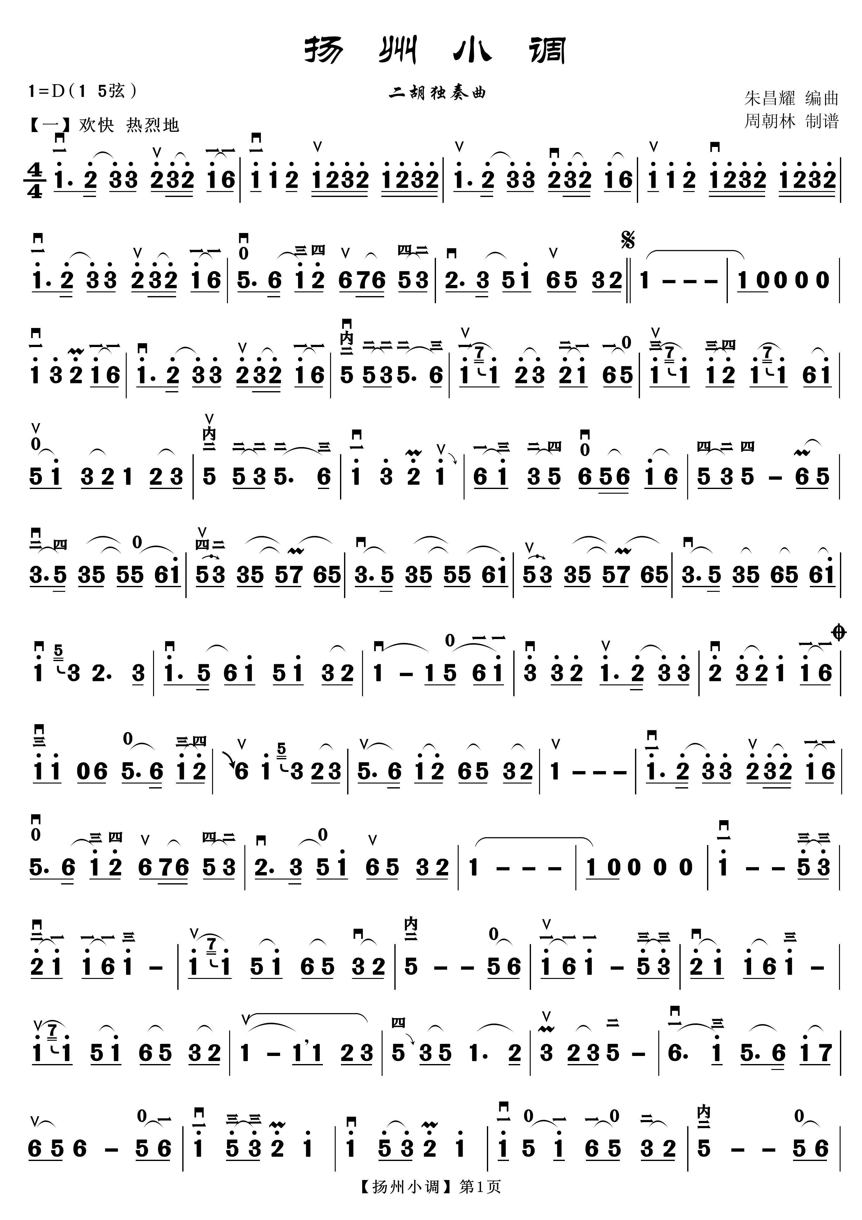 - [二胡谱] 扬州小调 二胡独奏曲 2