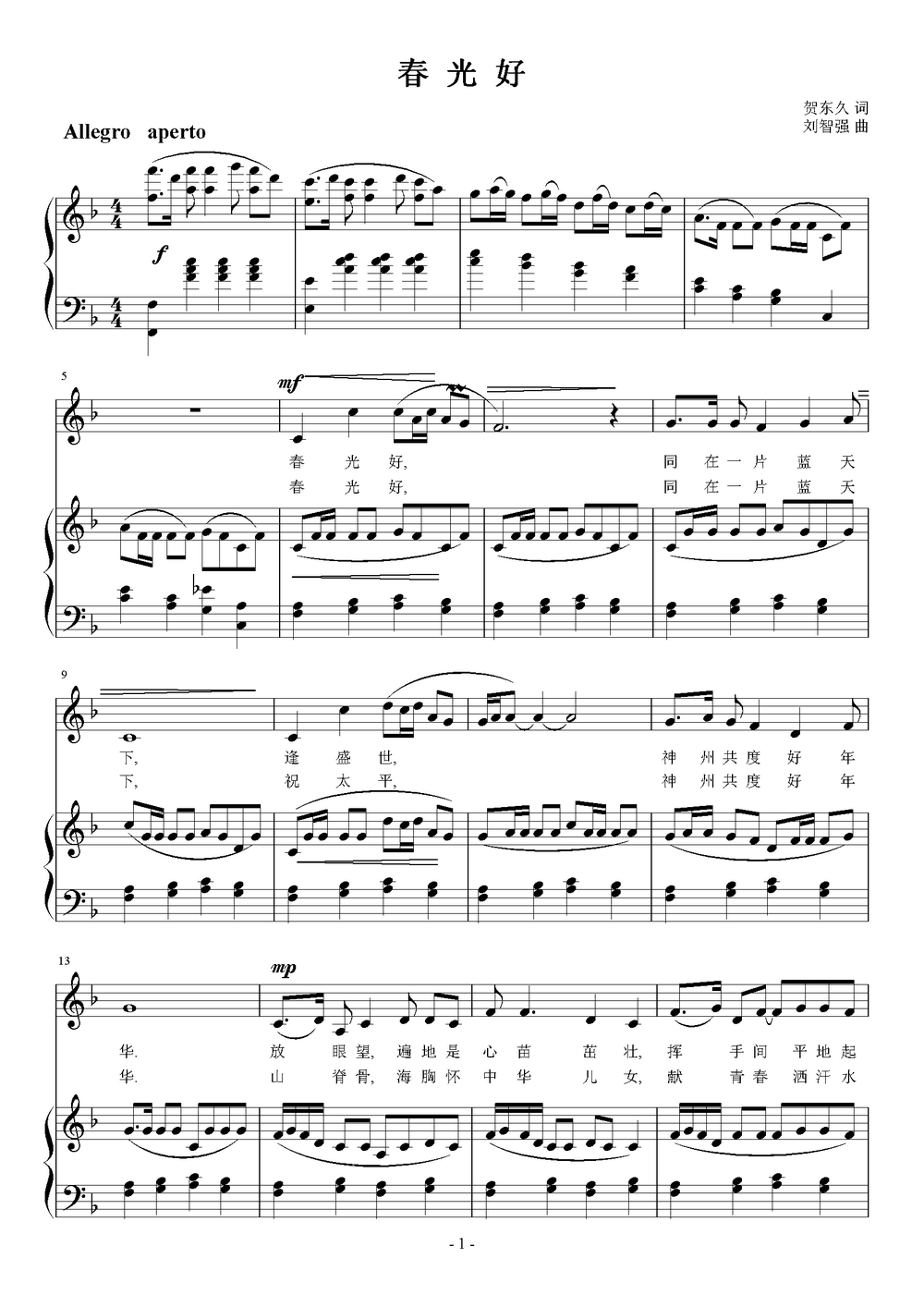 - [歌谱] 祖国春光好 2004年 双拥晚会 主题歌