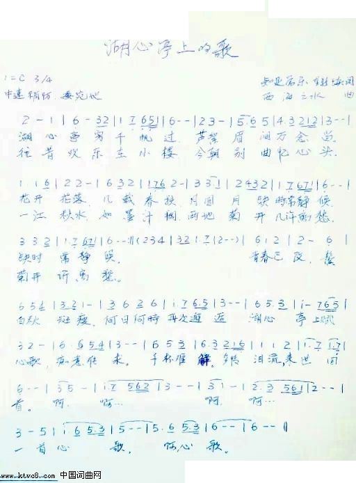- [歌谱] 湖心亭