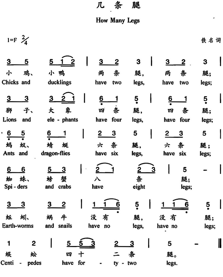 > 几条腿 中英文对照