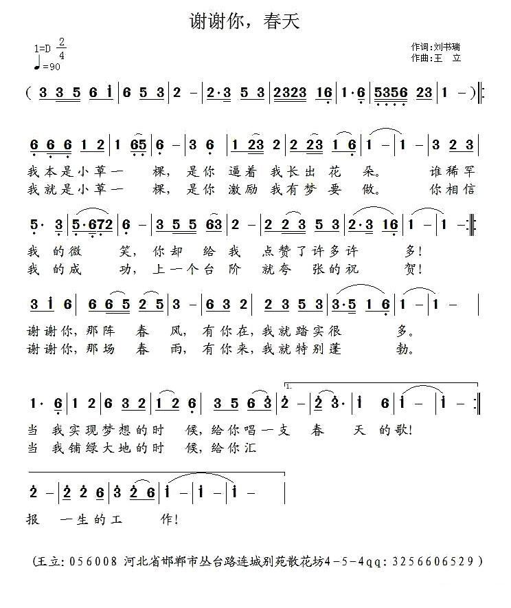 - [歌谱] 谢谢你