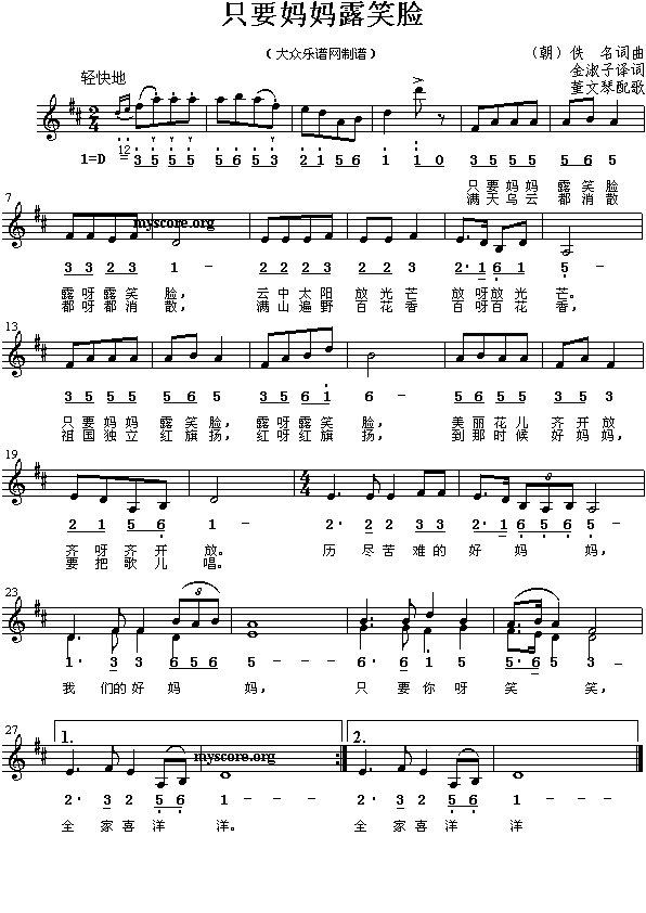 只要妈妈露笑脸 朝鲜民歌 二重奏