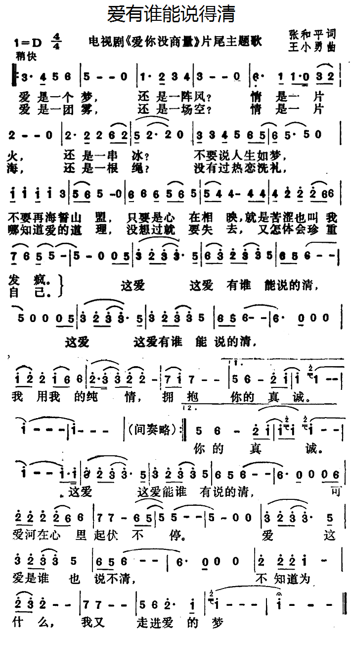 > 爱有谁能说得清 电视剧 爱你没商量 片尾曲
