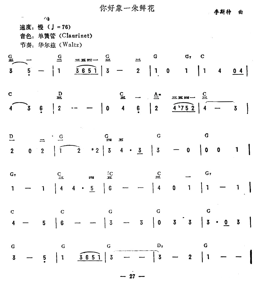 你好像鲜花一样 钢伴 钢琴伴奏谱
