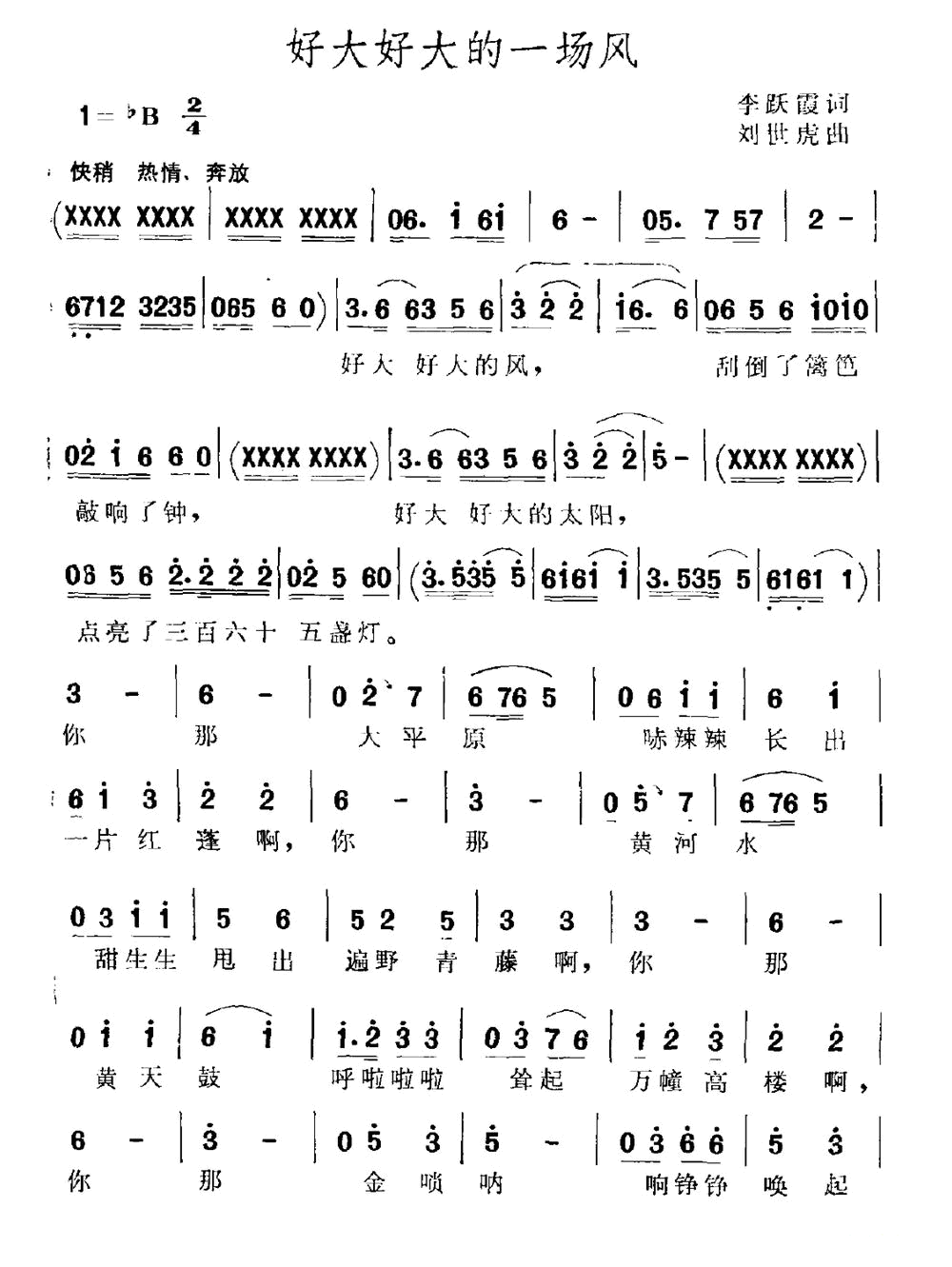 - [歌谱] 好大好大的风