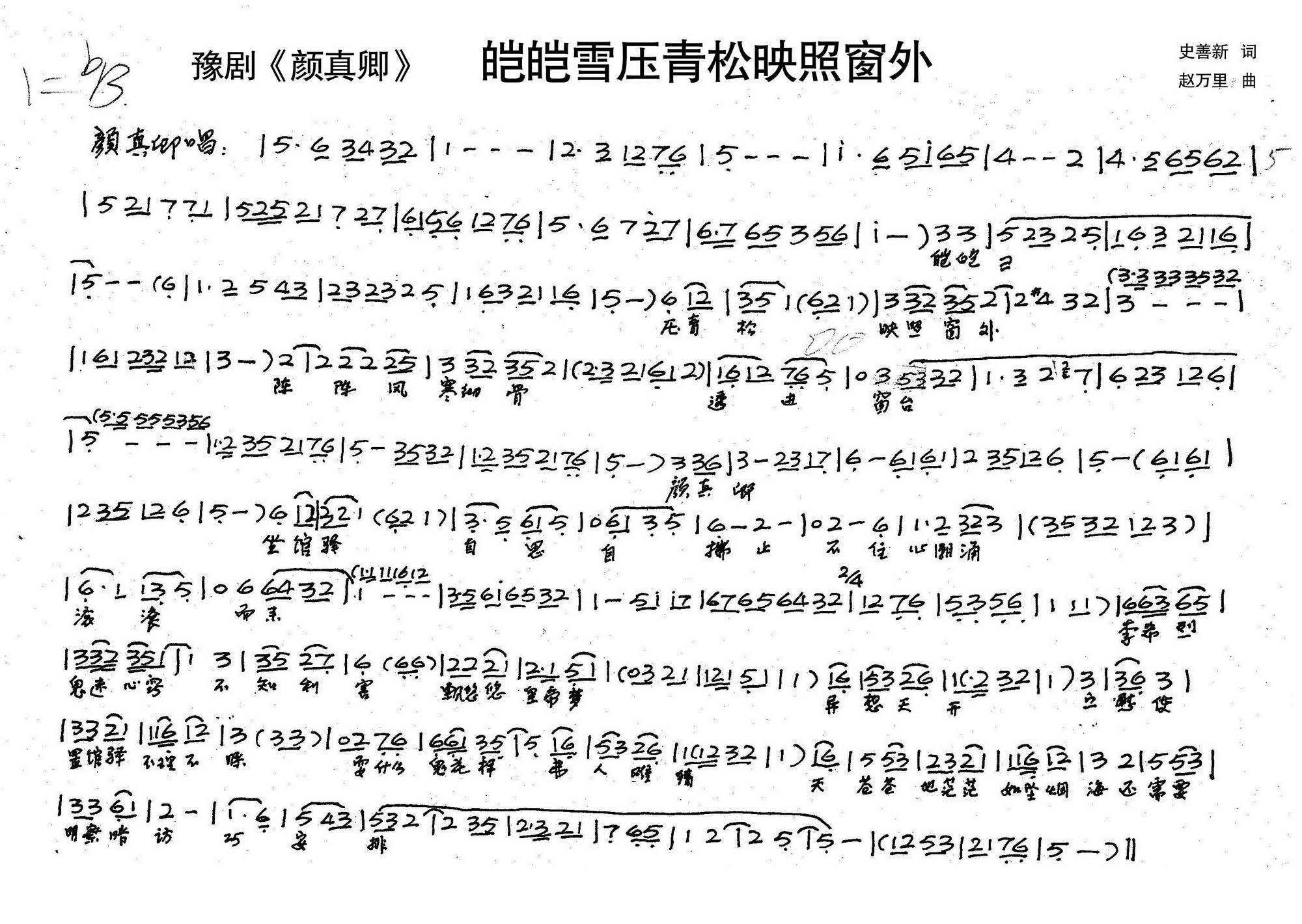 > 颜真卿 皑皑雪压青松映照窗外 历史豫剧 颜真卿 选段