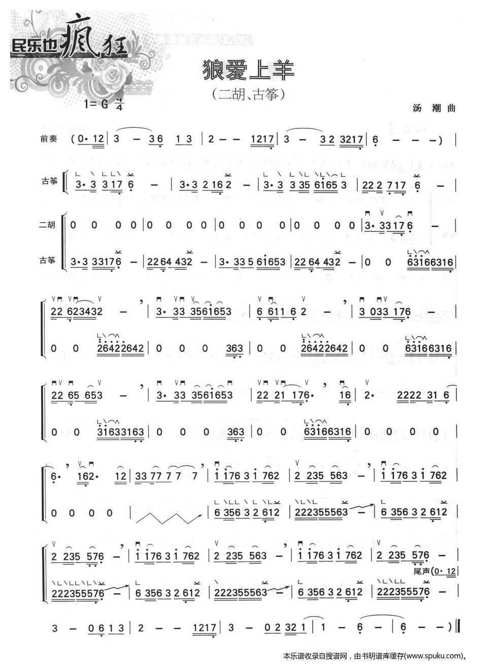 - [二胡谱,古筝谱] 狼爱上羊 二胡 古筝