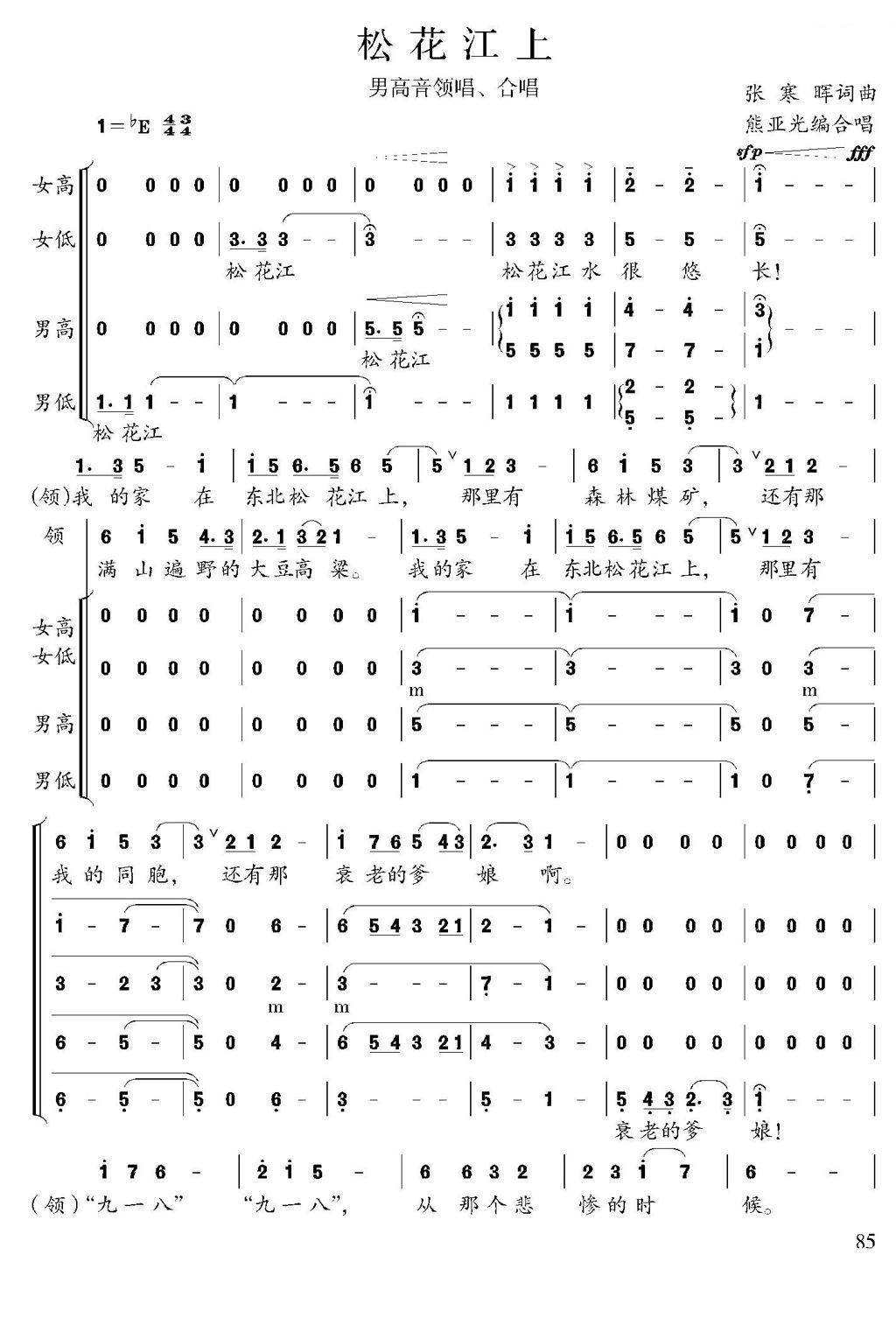 - [歌谱] 松花江上 熊亚光编合唱版