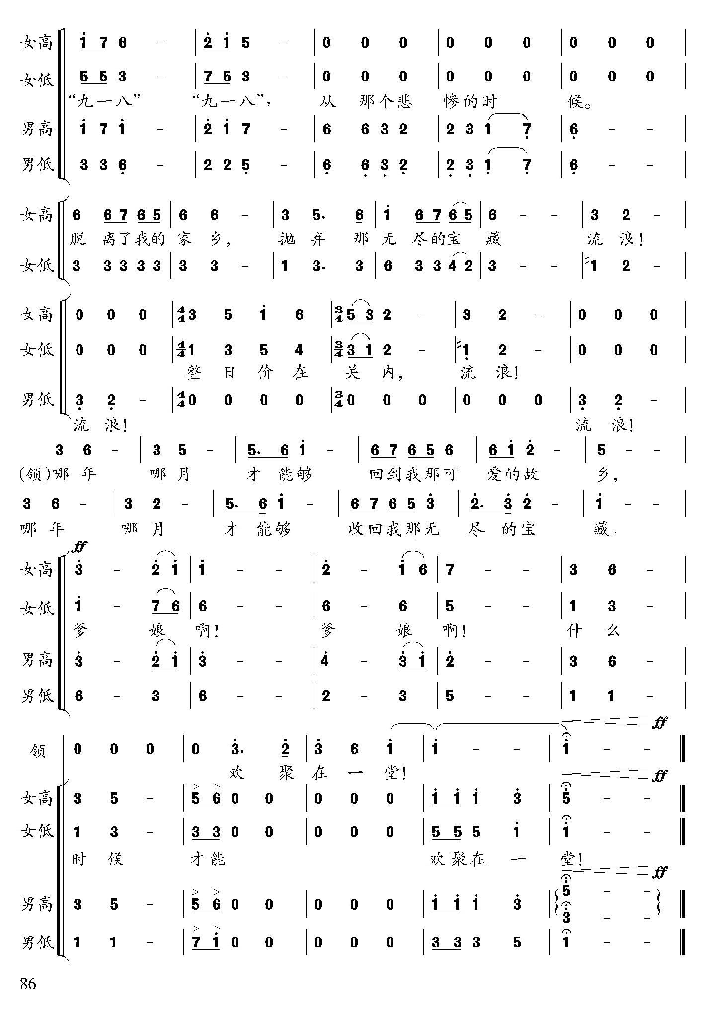 - [歌谱] 松花江上 合唱谱