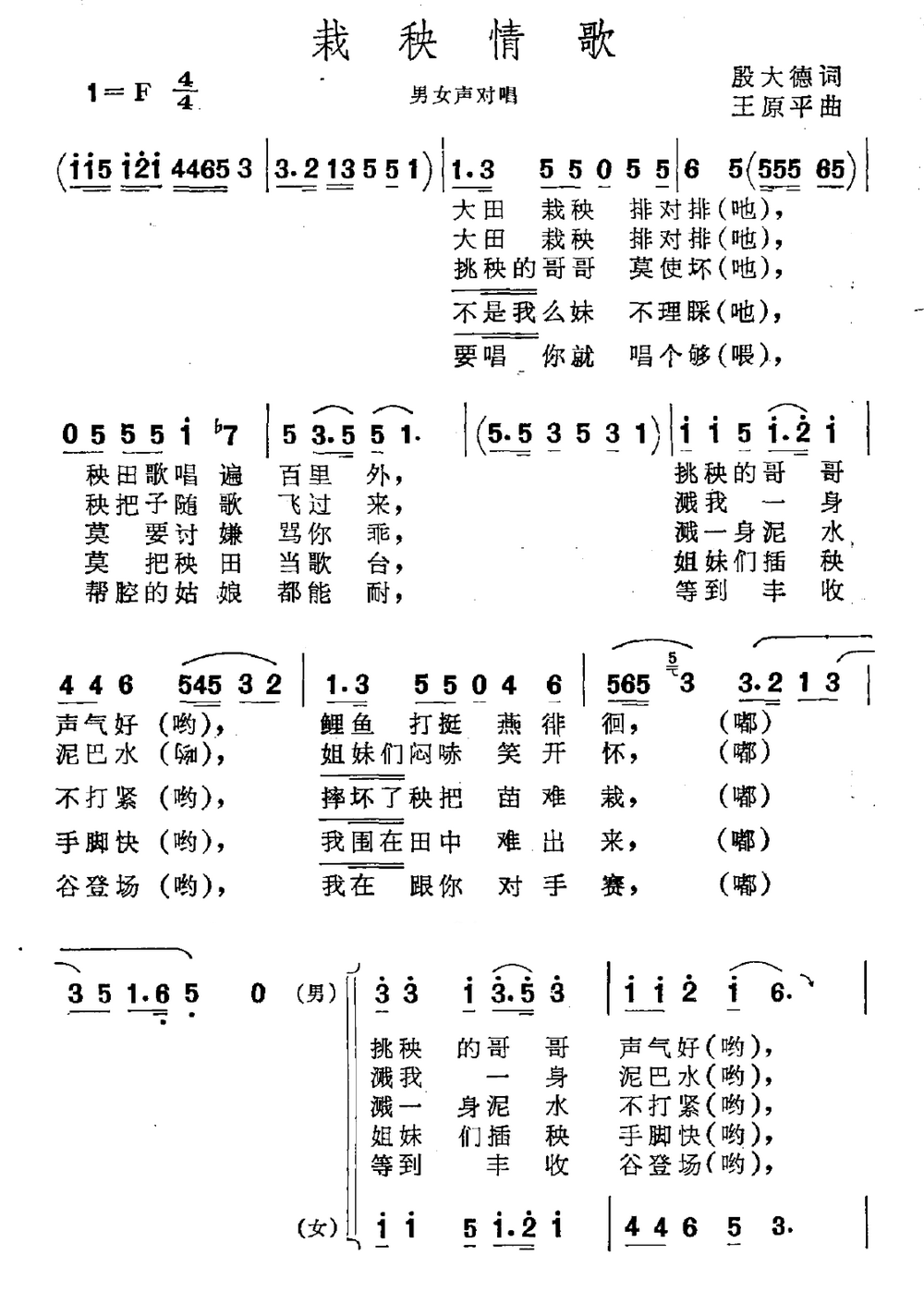 > 栽秧情歌 男女声对唱