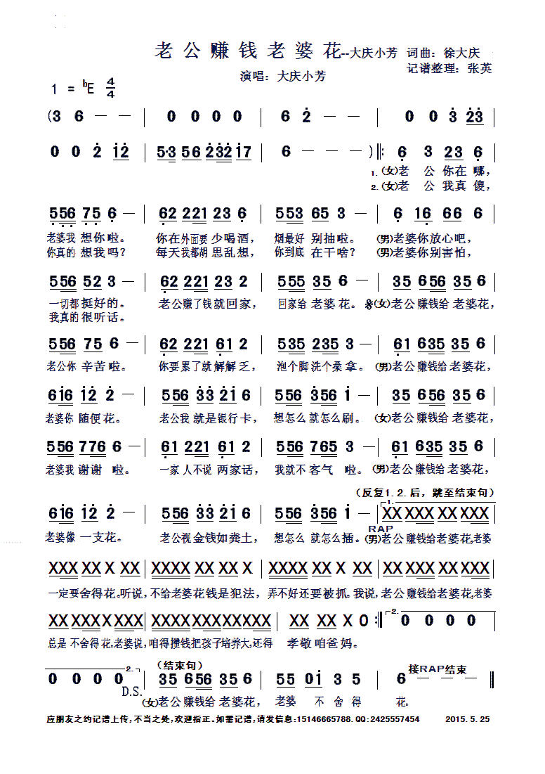 老公赚钱老婆花 恢谐歌曲 彩谱