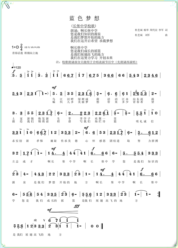 长堡中学校歌