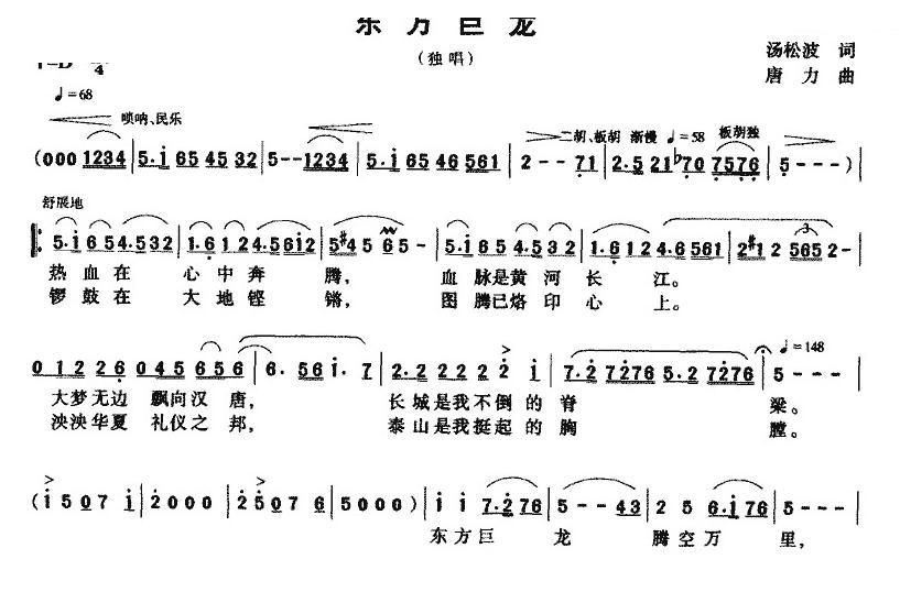- [歌谱] 东方巨龙