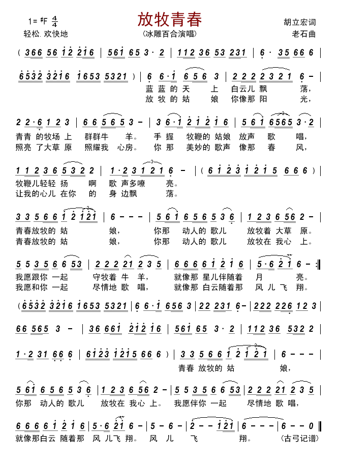 - [二胡谱,歌谱] 放牧青春