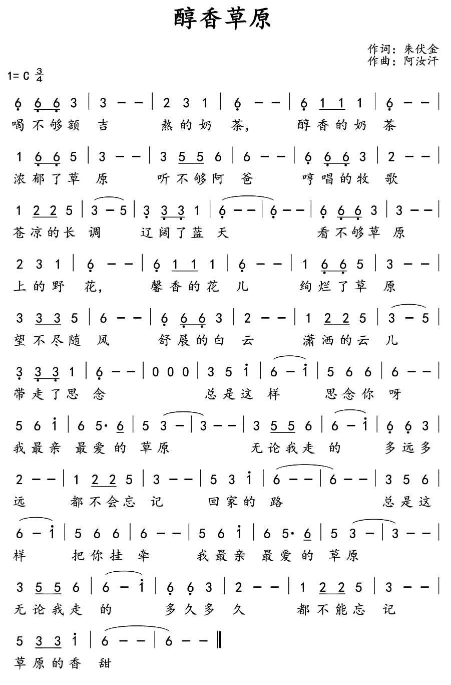 - [歌谱] 醇香草原