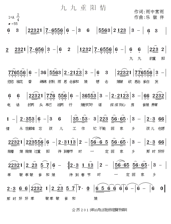 - [歌谱] 重阳情