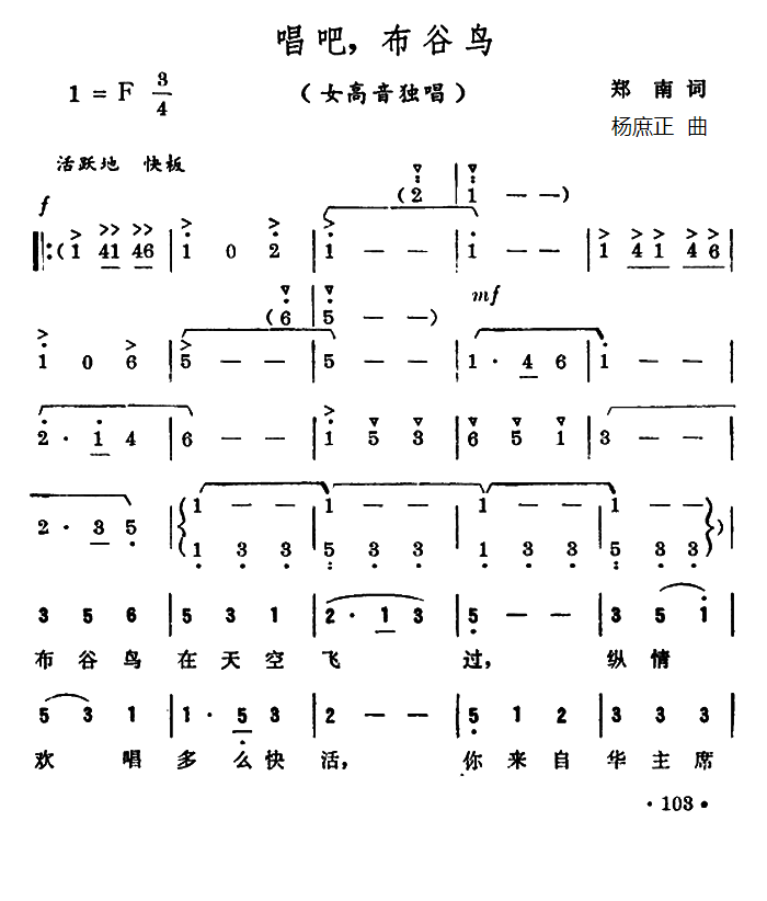 - [笛子谱,歌谱,箫谱] 布谷鸟来了
