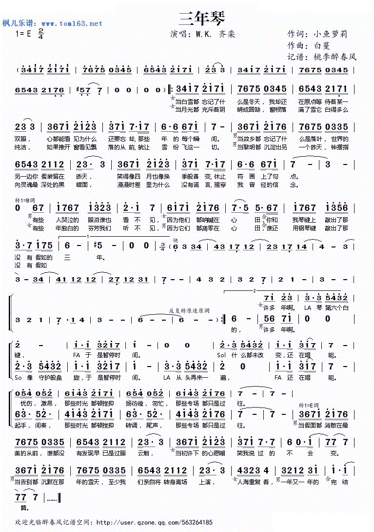 - [歌谱] 瑞鹊仙歌 W K 竹桑