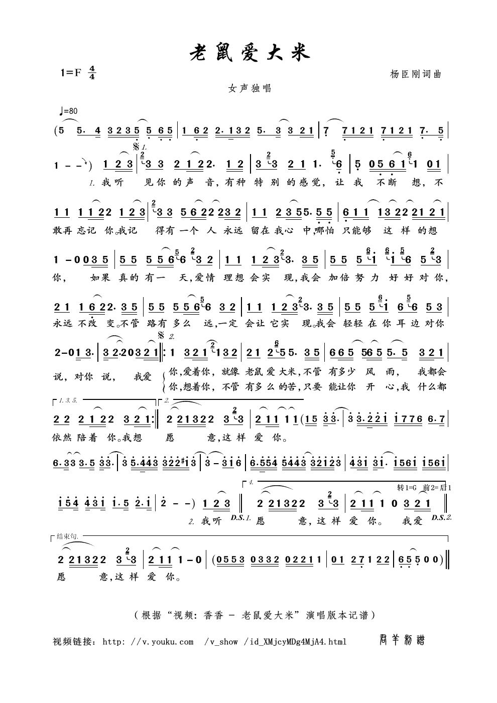 - [歌谱] 老鼠爱大米 杨臣刚