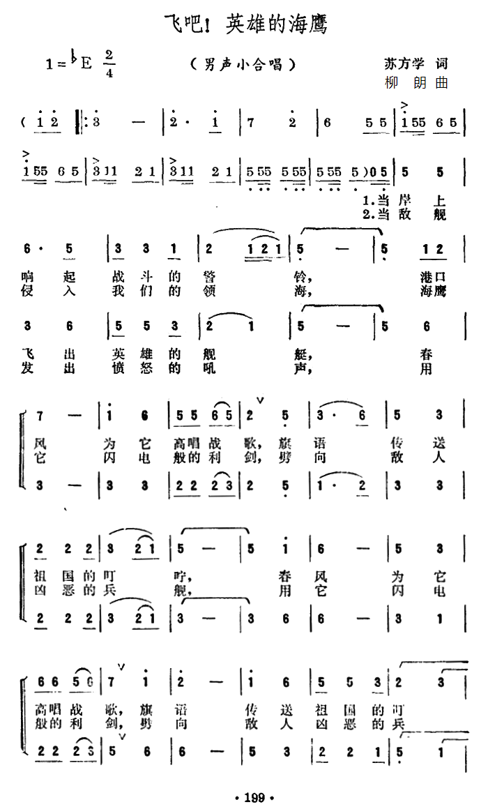 > 飞吧 英雄的海鹰 男声小合唱