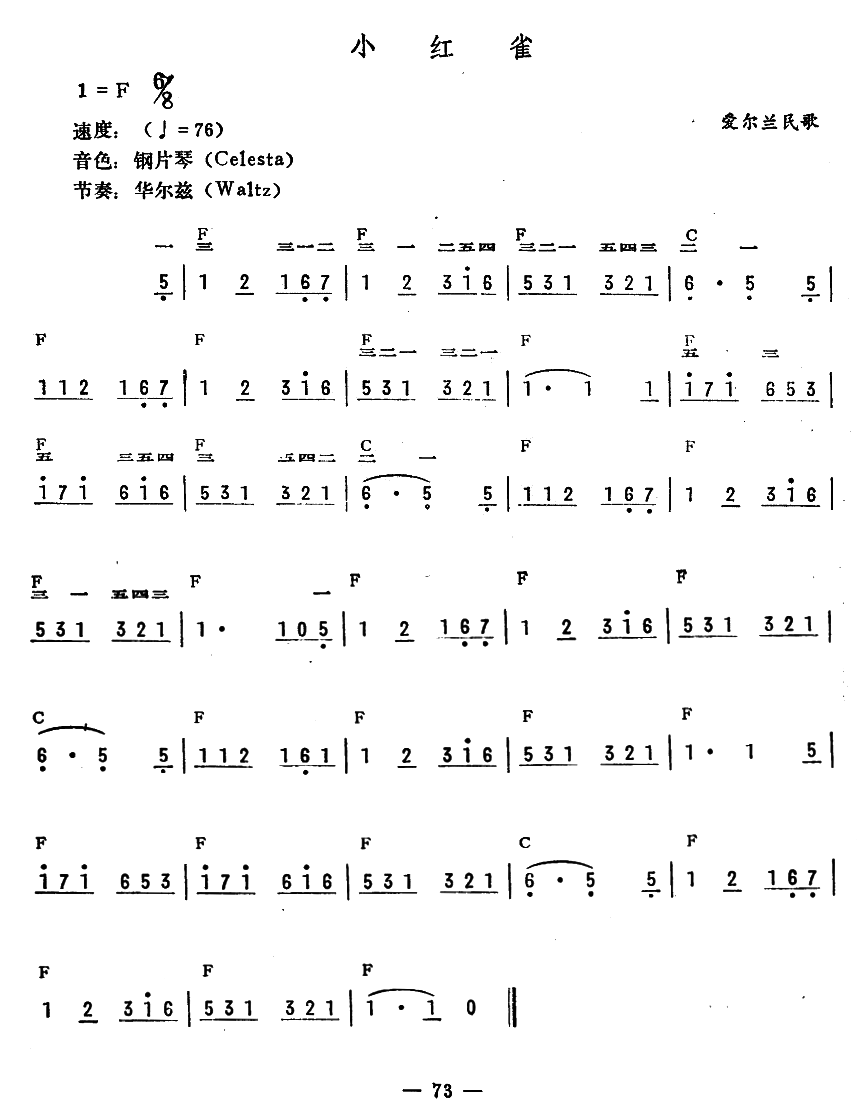 - [歌谱] 小调红