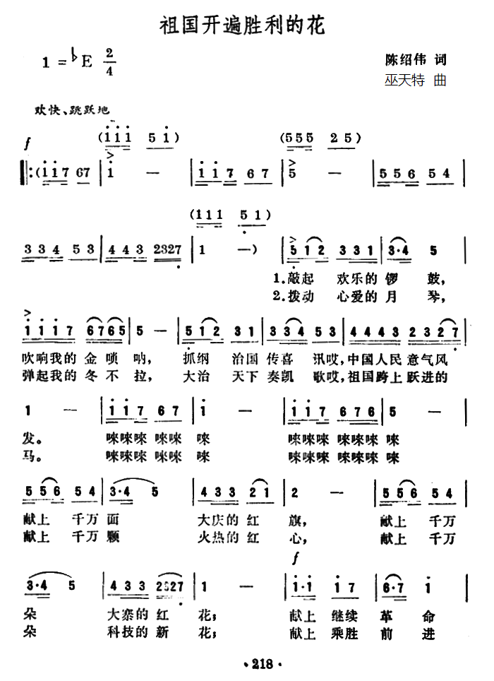 > 祖国开遍胜利的花