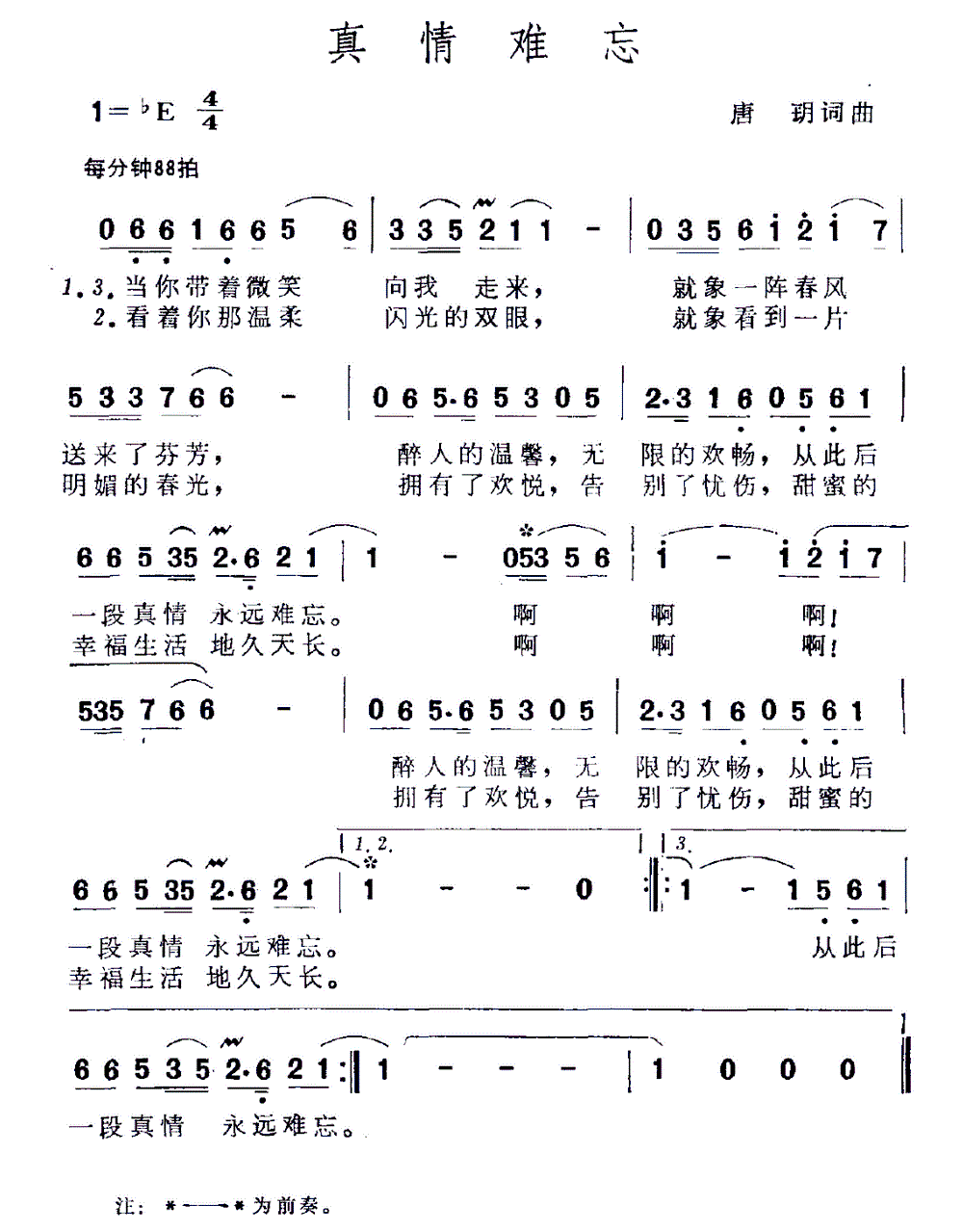 - [歌谱] 真情难忘 电视剧 向往 片尾曲