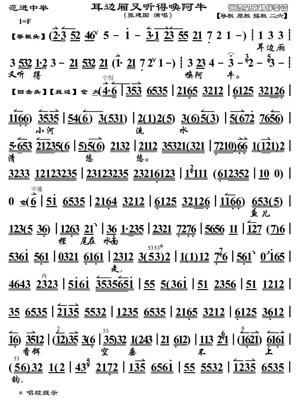 耳边响厢又听得唤啊牛 范进中举 选段 琴谱