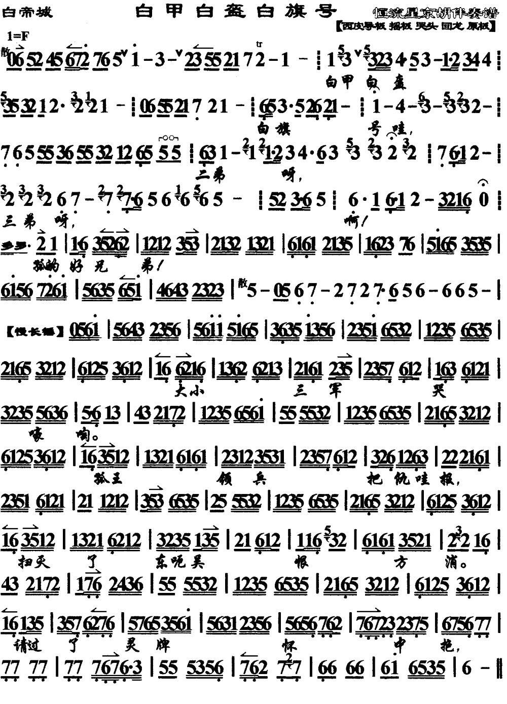 > 白甲白盔白旗号 白帝城 选段 琴谱