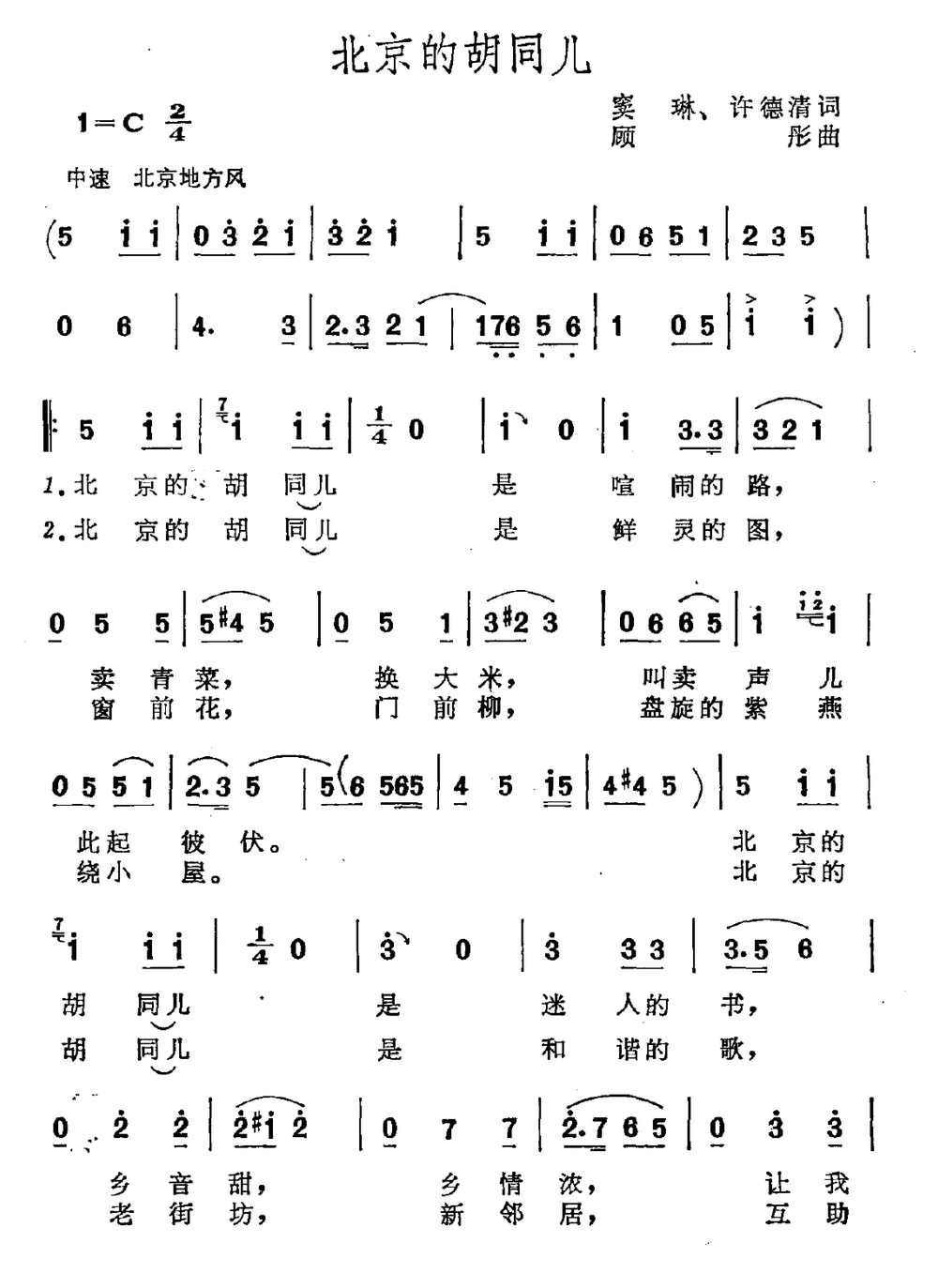 - [歌谱] 北京胡同