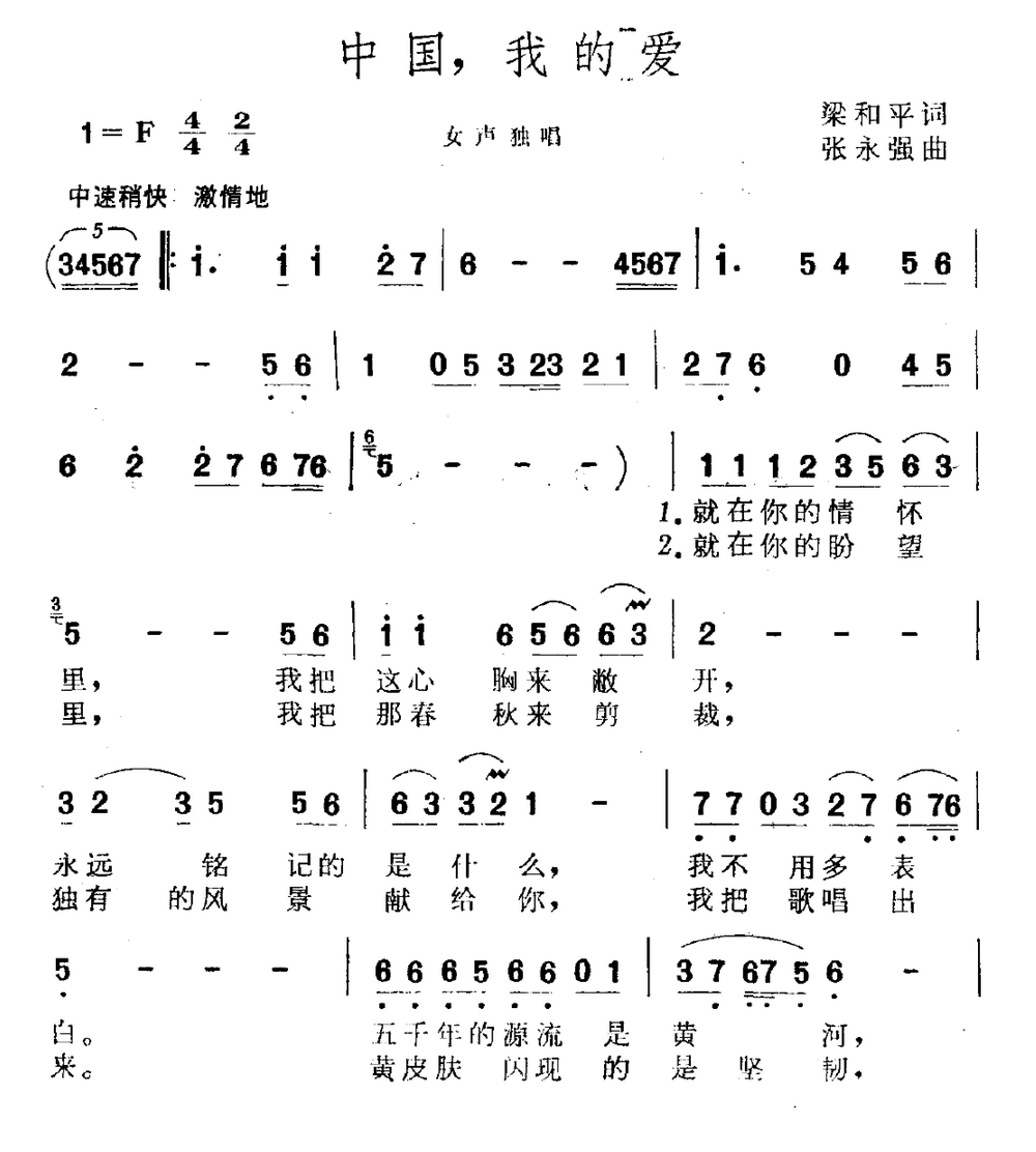 - [歌谱] 中国 我的主题歌 禹永一曲
