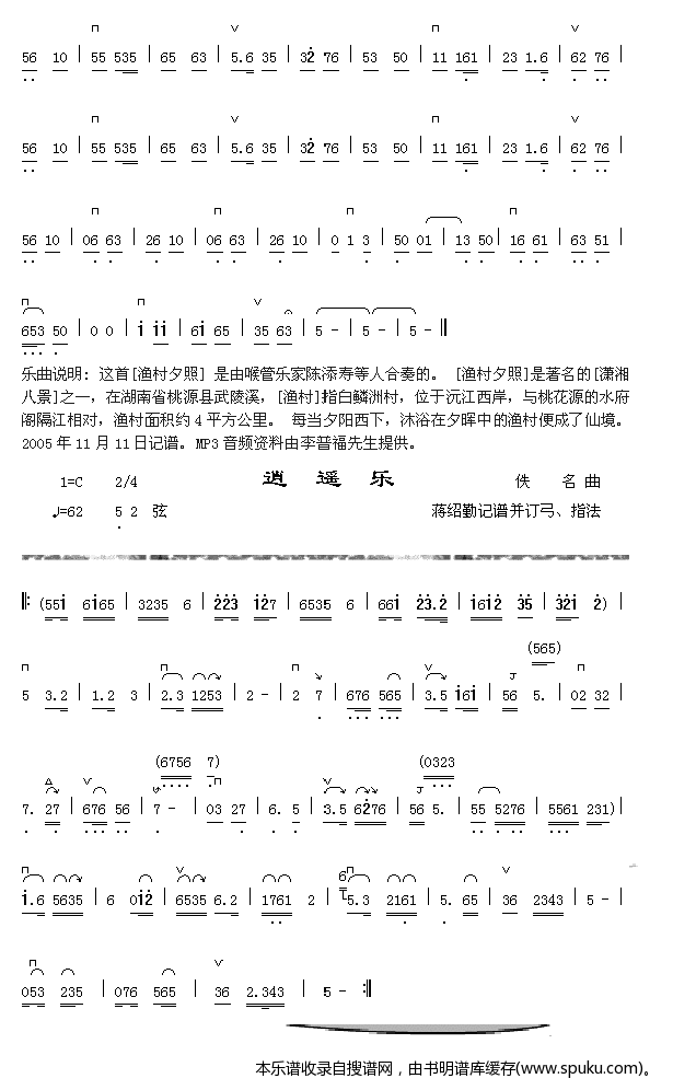 渔村夕照 二弦 逍遥乐