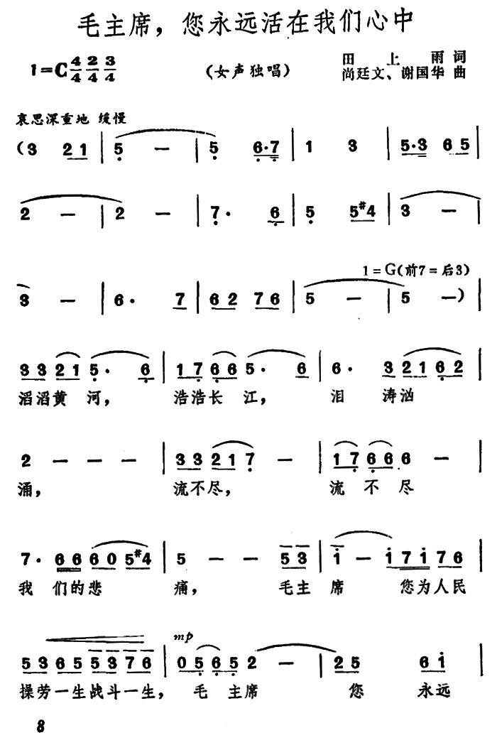 毛主席永远活在我们心中 广州军区歌舞团词
