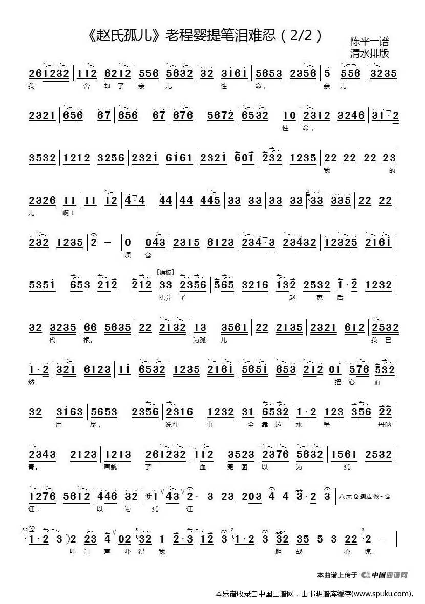 老程婴提笔泪难忍 京剧 赵氏孤儿 选段 京胡谱